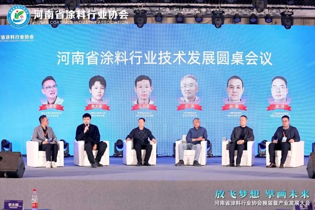 技术交流大会上,潜江方圆钛白有限公司首席研发工程师、博士肖栋,江苏欧摩德新材料有限公司技术总监胡胜初、安徽三曦建筑材料有限公司研发工程师董云龙、佛山市顺德区荷叶化工有限公司总经理梁小松、广东恒和永盛集团有限公司应用技术总监李伟分别作《携手涂料行业高质量发展》《“欧摩德”高新产品水性工业漆推介》《688无保护胶多彩仿石漆体系介绍》《工业和净味乳液产品的创新应用》课题报告,会议由协会专家委员会副主任、河南大学教授张经纬主持。随后举行了河南省涂料行业技术发展圆桌会议,河南卧龙涂料科技有限公司总经理李太郎、河南省金凤化工有限公司副总经理王占森发言、郑州佳诺实业有限公司总经理于洪、河南颂源涂料有限公司技术总工孙振、广东恒和永盛集团有限公司应用技术总监李伟5位嘉宾分别就企业技术创新存在的困难和挑战、如何做好原材料的优化工作以及未来企业产品开发重心与方向3个议题进行探讨。嘉宾人员分别从技术创新、产品开发、市场需求等多个角度出发,剖析行业发展现状,为企业发展提供建议和意见,圆桌会议由协会副会长、新乡市海川新材料科技有限公司总经理马贵军主持。