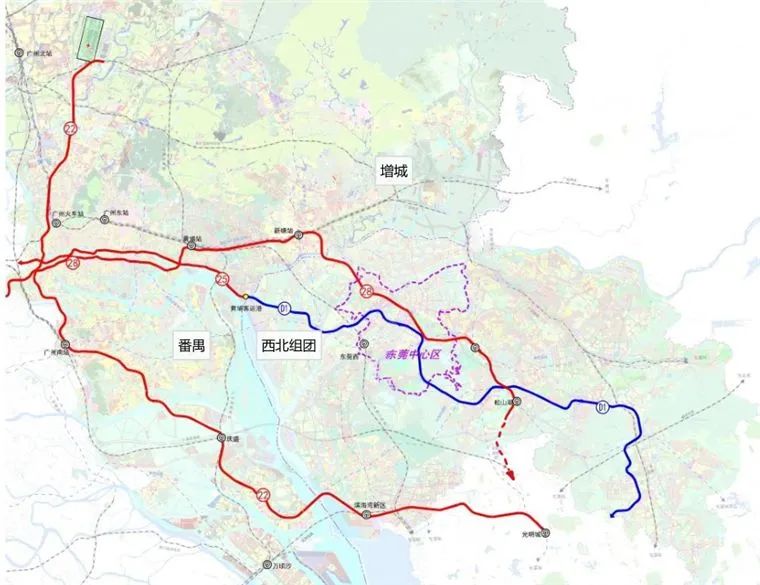 此外,东莞市轨道交通局对广州22号线延伸至东莞滨海湾新区做了回应。根据规划,广州地铁22号线自广州南沙客运港引出,与中南虎城际互通,然后下穿狮子洋,接入东莞滨海湾新区,然后向东延伸经深圳松岗站止于光明城站,延伸段长约40.8km,共设3站,其中广州段长约2.8km、东莞段长约19.3km、深圳段长约18.7km;延伸后线路全长约148.8km(白云机场-光明城)。