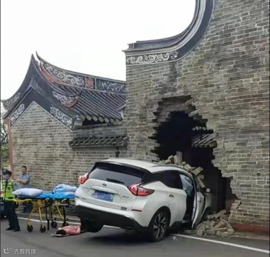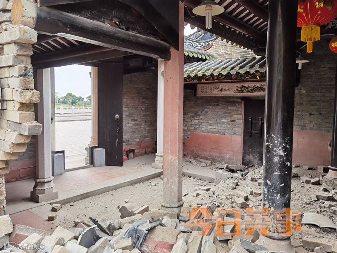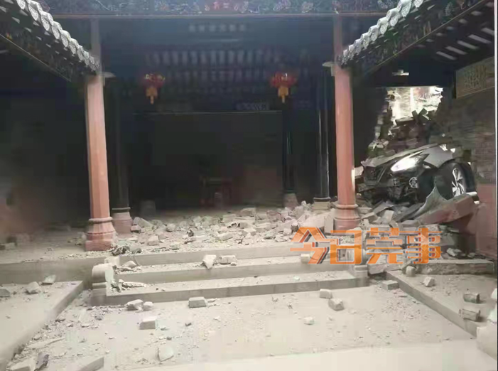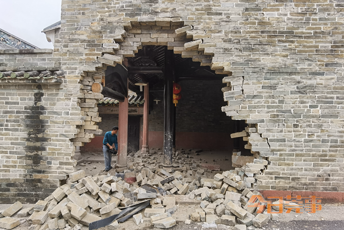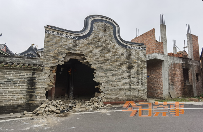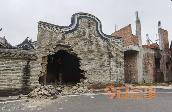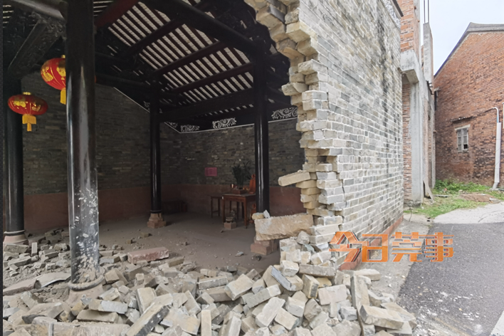 发生碰撞的墙体是宗祠隔壁的一面墙体