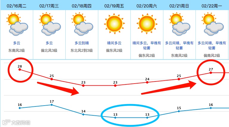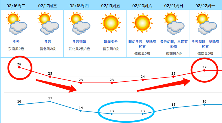 初六到初七(17-18日):受冷空气影响,云量增多,气温小幅下降;