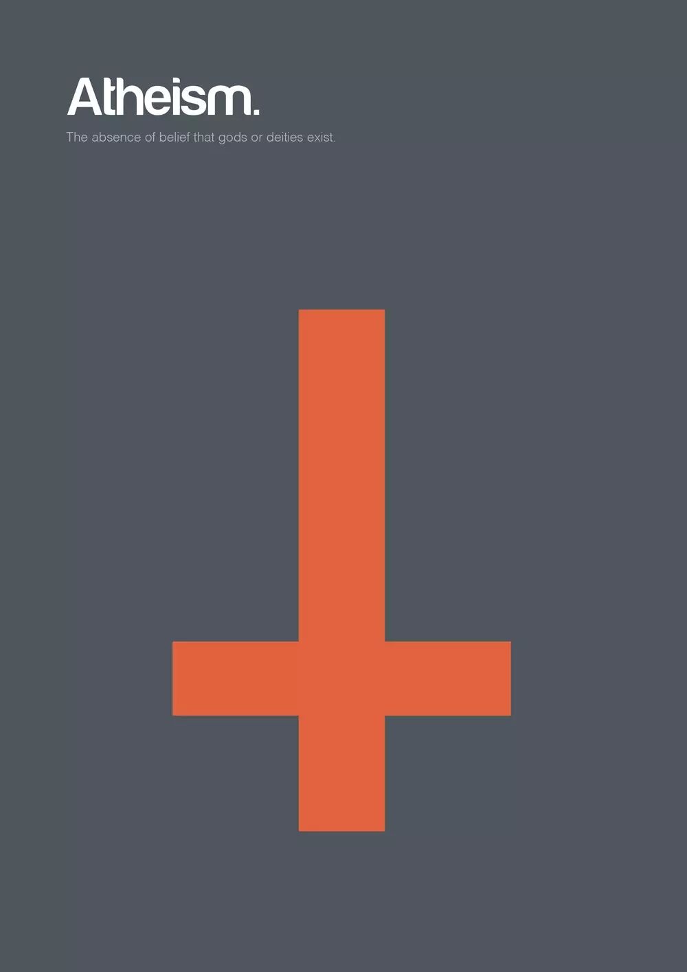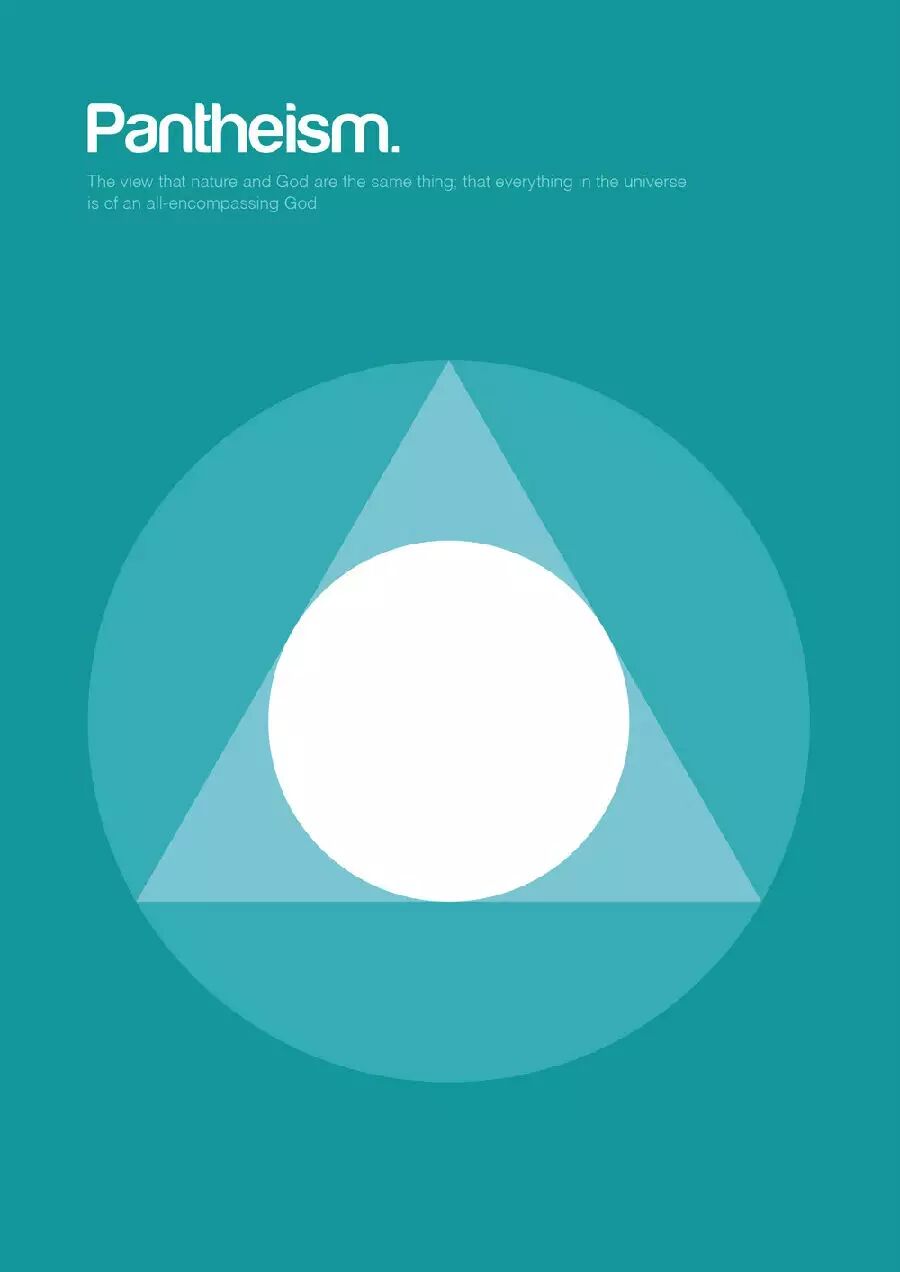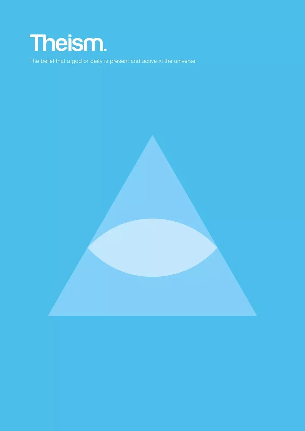 广义上的有神论认为至少存在一个神明。狭义上特指一神论信仰,认为世界有一位至高的神明,关注于宇宙与这位神明之间的关系。海报设计者的理解是狭义的有神论。(“无神论”在上面第 7 条)