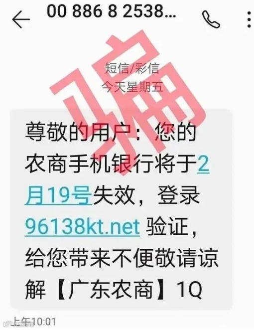 二、在此类诈骗短信中,一定会有冒充银行等机构的虚假链接,当收到含有链接的短信并要求输入个人银行卡等重要信息的,请不要理会。