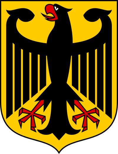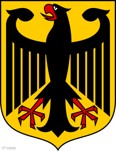 德国的国徽是一枚土黄色为底色的盾牌,盾面绘有一只红爪红嘴、双翼展开的黑色老鹰,称为“联邦之鹰”(德语:Bundesadler;昔日称为“Reichsadler”,意为“帝国之鹰”),黑鹰象征着力量和勇气,并与国旗的三种颜色相互辉映。