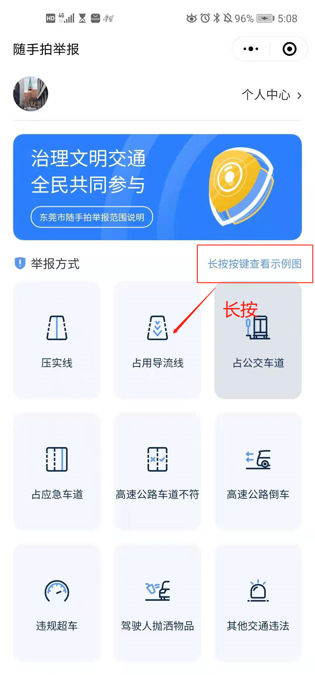 注意:每种交通违法都有参考图例,可长按按键查看示例图。