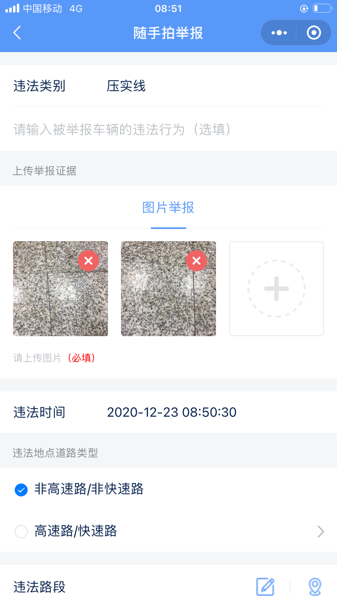 同时,拍摄图片或视频需要能够清晰记录违法车辆号牌、外观以及违法事实,并包含道路交通标志标线及周边环境情况。