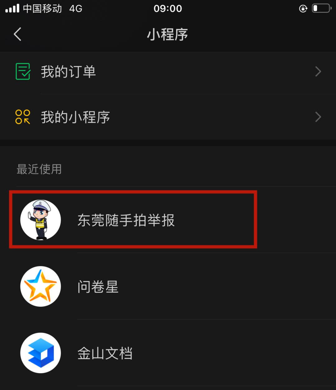 第一步:打开微信搜索“东莞随手拍举报”或扫下方二维码进入小程序