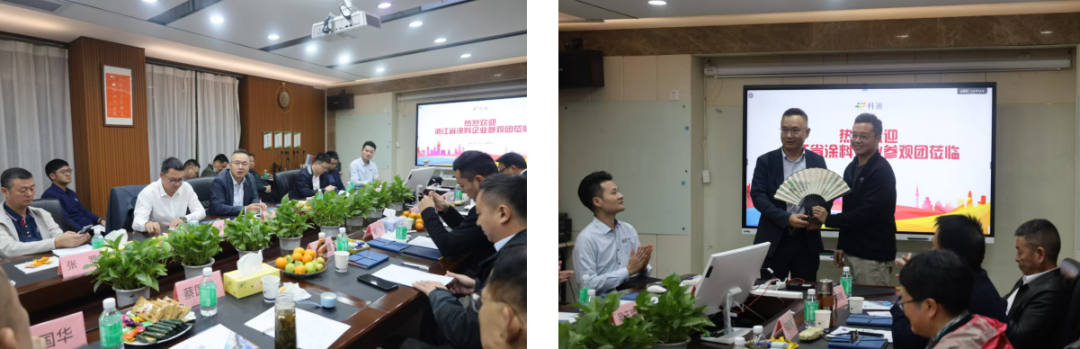 随后,考察团参加了座谈会。吕秘书长在致辞中首先对考察团的到来表示热烈欢迎,并简要介绍了当前涂料与油墨行业的发展趋势及面临的挑战。接着,科迪总经理陆明发表了热情洋溢的欢迎辞,对考察团的到来表示衷心的感谢,并期待通过此次交流,共同推动行业技术进步与发展。