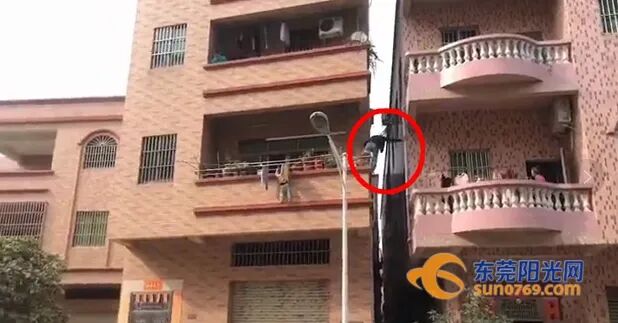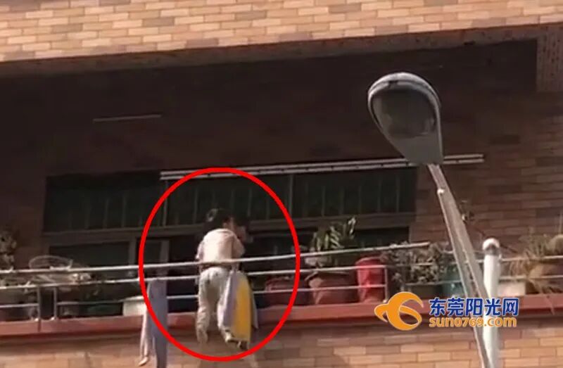 太险了!东莞2岁孩子爬出阳台悬挂半空,这一幕让人揪心!幸好……