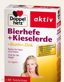 啤酒酵母+硅+生物素(Biotin)+锌能够对头发、皮肤、指甲和结缔组织的健康做出贡献: