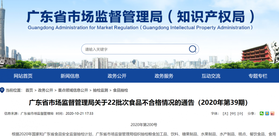 广东省市场监督管理局已要求辖区市场监管部门及时对不合格食品及其生产经营者进行调查处理,责令企业查清产品流向,采取下架、召回不合格产品等措施控制风险,并分析原因进行整改。同时要求辖区市场监管部门将相关情况记入生产经营者食品安全信用档案,并按规定在监管部门网站上公开相关信息。