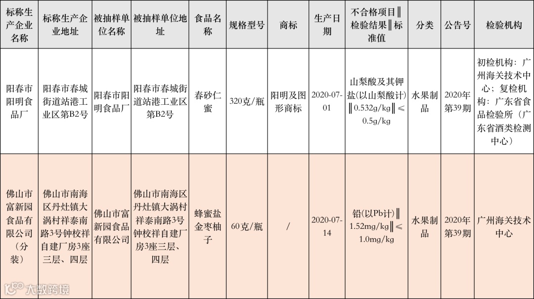 这次抽检不合格食品中