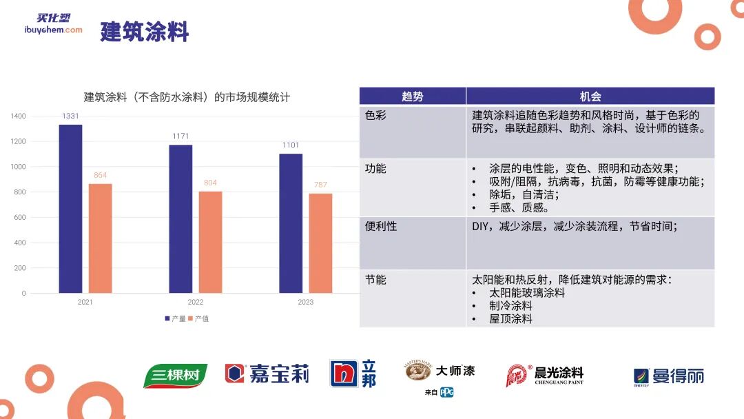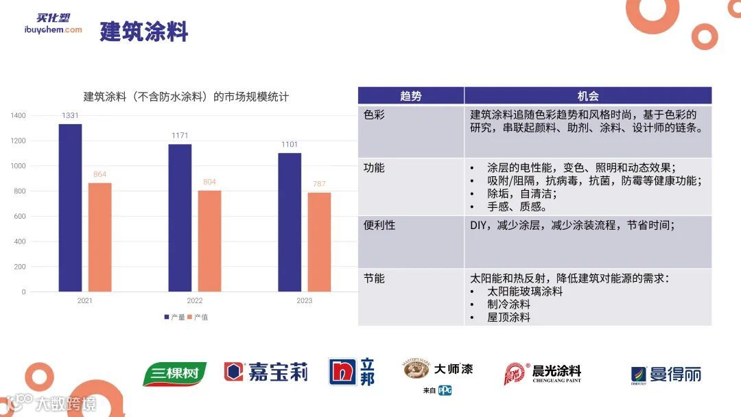 在报告中,陆宁以过往四年中国和全球涂料和防水市场的整体变化作为研究对象,聚焦企业经营和营利现状、上游原材料采购成本变化、下游市场新应用带来的新需求等内容进行论述。
