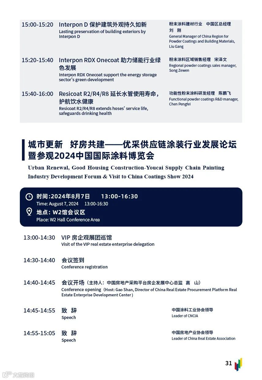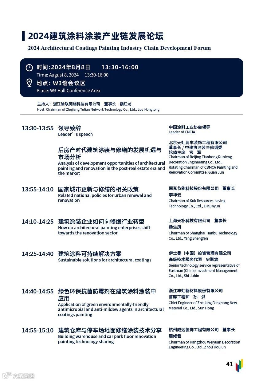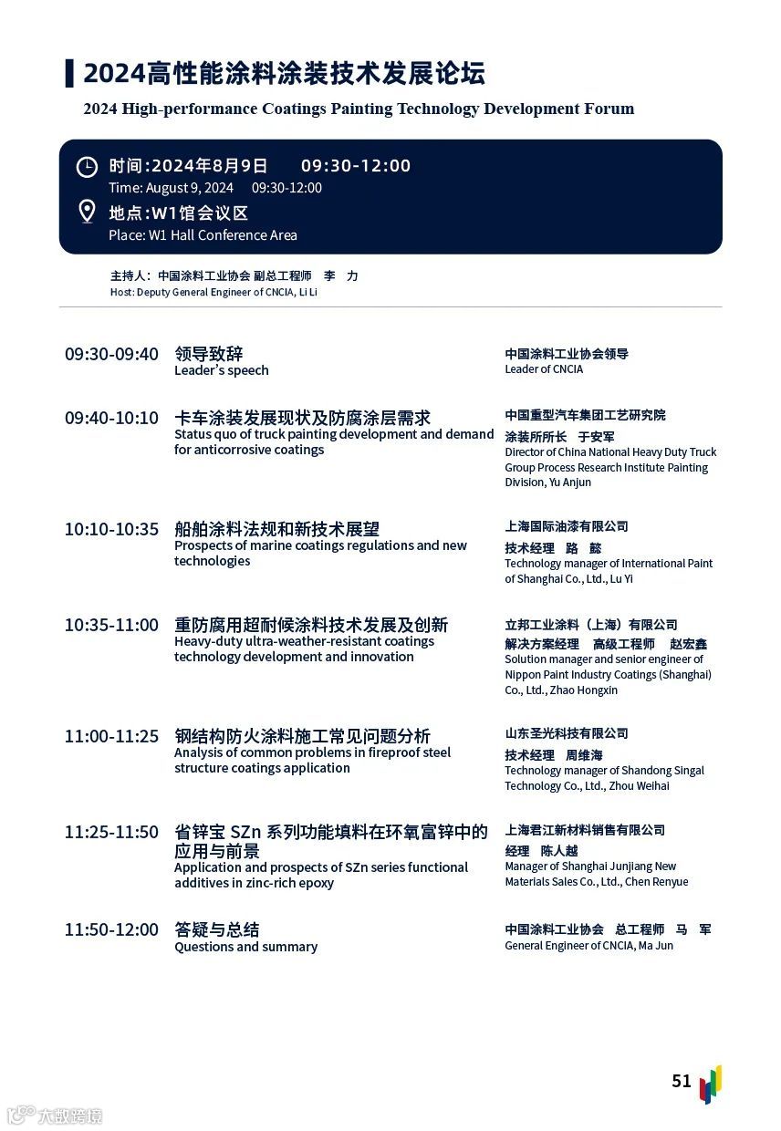 本届涂料展同期活动精彩纷呈,商贸配对、高峰论坛、国际论坛等互动交流也将满足全产业链市场拓展的需求,届时将吸引来自全球涂料行业及上下游产业链精英汇聚上海,共襄涂料行业盛会。