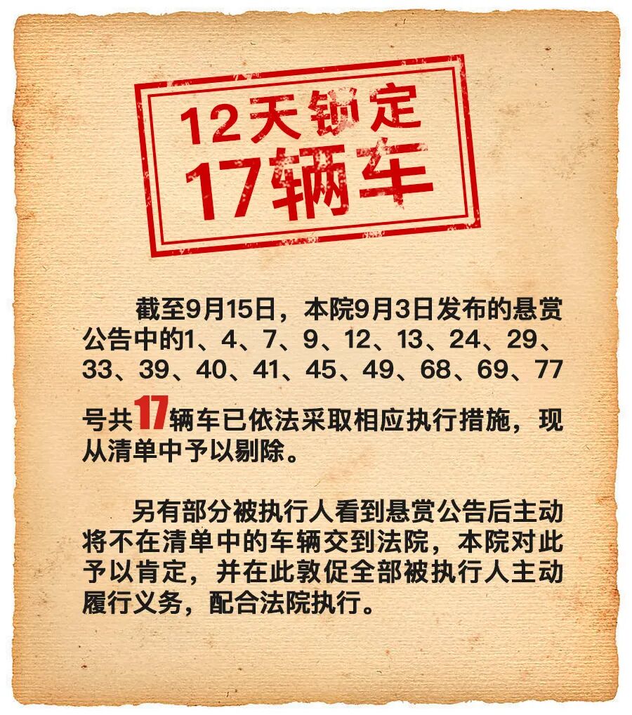 4. 本次悬赏2020年11月30日24时截止。悬赏到期后本院将更新车辆清单,另行发布悬赏公告。