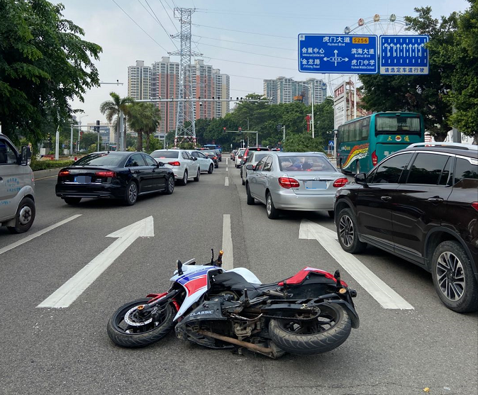 2020年9月2日14时18分,东莞虎门镇连升中路发生了一起无接触交通事故。