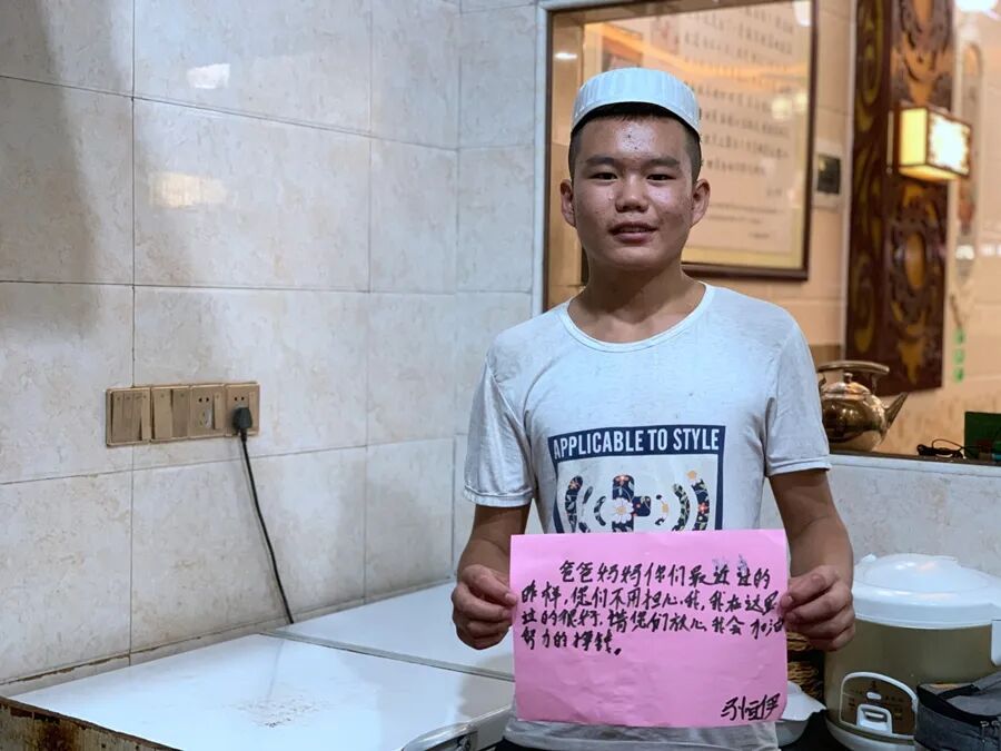 面馆学徒马恒伊(青海):“爸妈,我在东莞学艺挺习惯的,这个城市很温暖,师傅一家对我也很好,您们放心,儿子会努力学习,努力奋斗的。”