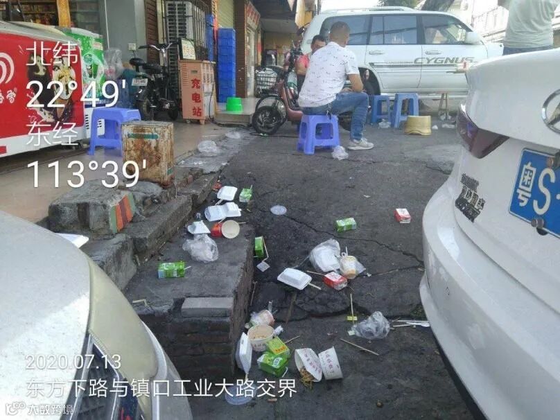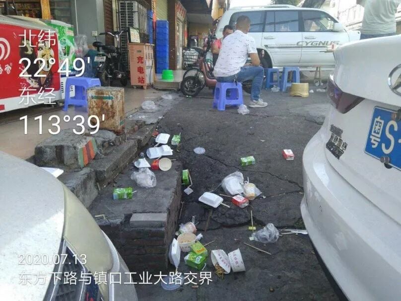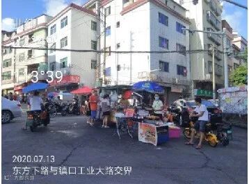 ▲(镇口社区)东方下路与镇口工业大路交界(乱设摊点)