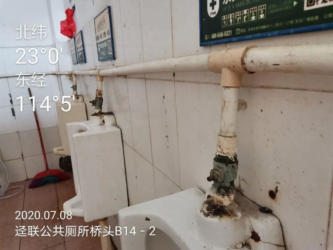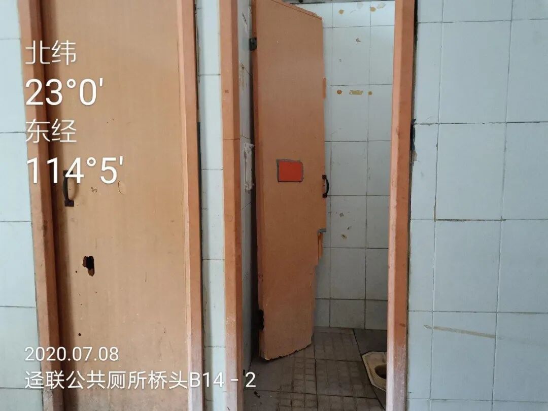 该公共厕所设施损坏严重,地面、冲便器长期无冲洗;