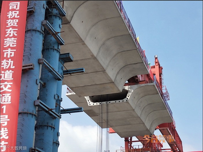 据介绍,市轨道交通一号线首跨节段梁为30m双线简支梁,由12个节段组成,总重约460吨。