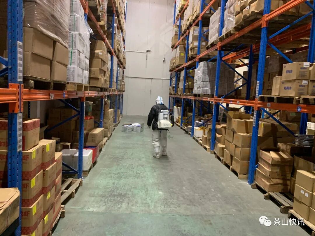 ▲对企业的冷库进行全面消杀