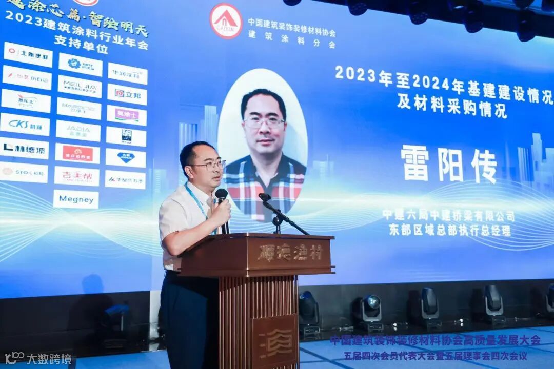 中建六局中建桥梁有限公司东部区域总部执行总经理雷阳传分享了《2023年至2024年基建建设情况及材料采购情况》。他认为,尽管当前建筑业面临下行压力,但行业仍应坚持加强内外部合作,反对价格战,增强行业信心。他强调,在当前复杂多变的市场环境下,提高产品质量和服务水平是企业持续发展的关键。同时,他还提出了“走出去”的战略,鼓励行业在保证国内市场稳固的基础上,积极开拓海外市场,寻找新的增长点。