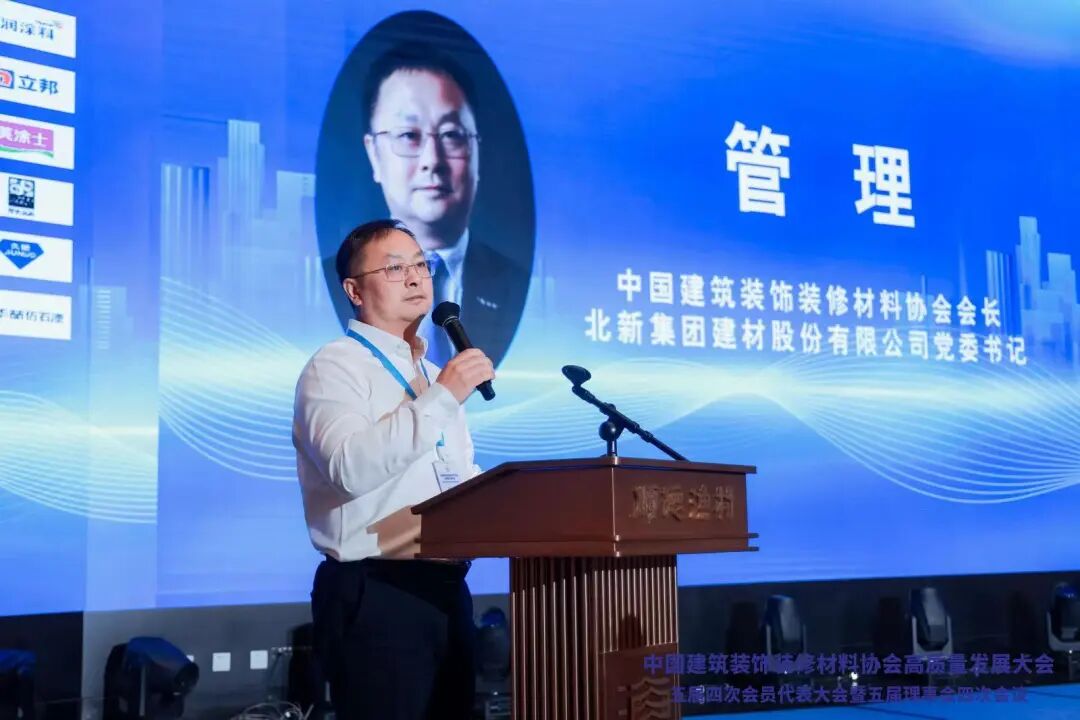 北新集团建材股份有限公司党委书记、中国建筑装饰装修材料协会会长管理为大会致辞致辞。