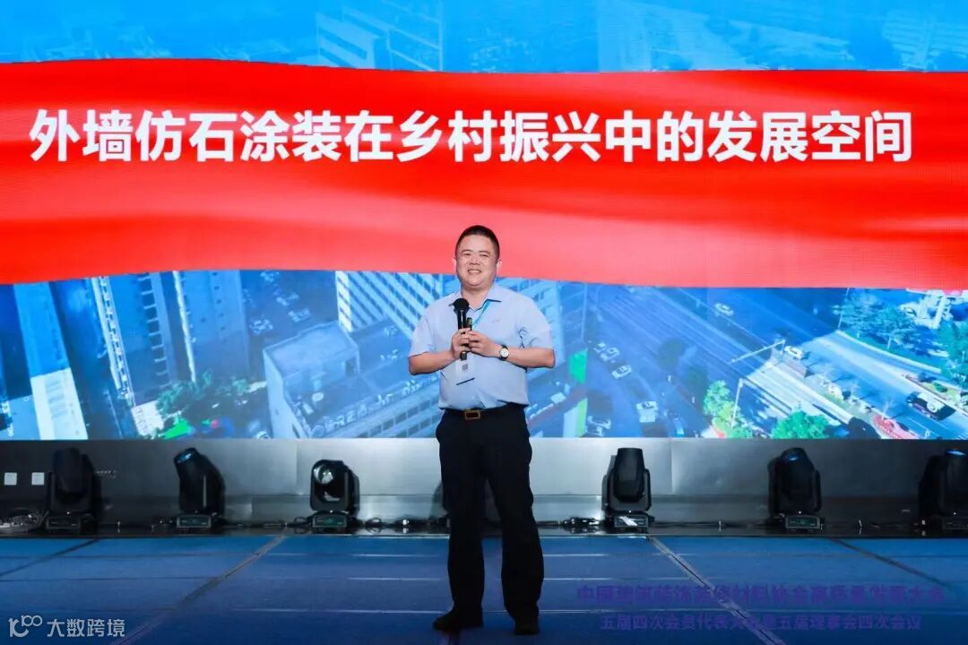 中国建筑装饰装修材料协会建筑涂料分会专家委主任潘奎山带来了《外墙仿石涂装在乡村振兴中的发展空间》的分享。他表示外墙仿石涂装在乡村振兴中拥有巨大发展空间。他强调,仿石漆的交付效果需融合优秀设计、高质量产品、精湛工艺、精细施工细节管理、高效施工团队管理机制和优质服务,以全面展现其优势并占据市场领先地位。