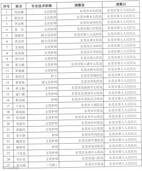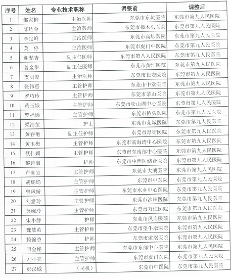 7月19日,市卫生健康局紧急下发相关通知,从全市各大医院征调27人(26名医护,1名司机)支援市九院,要求相关人员当日下午2时30分前报到。(相关链接: 最新!东莞报告1例境外输入无症状感染者!)