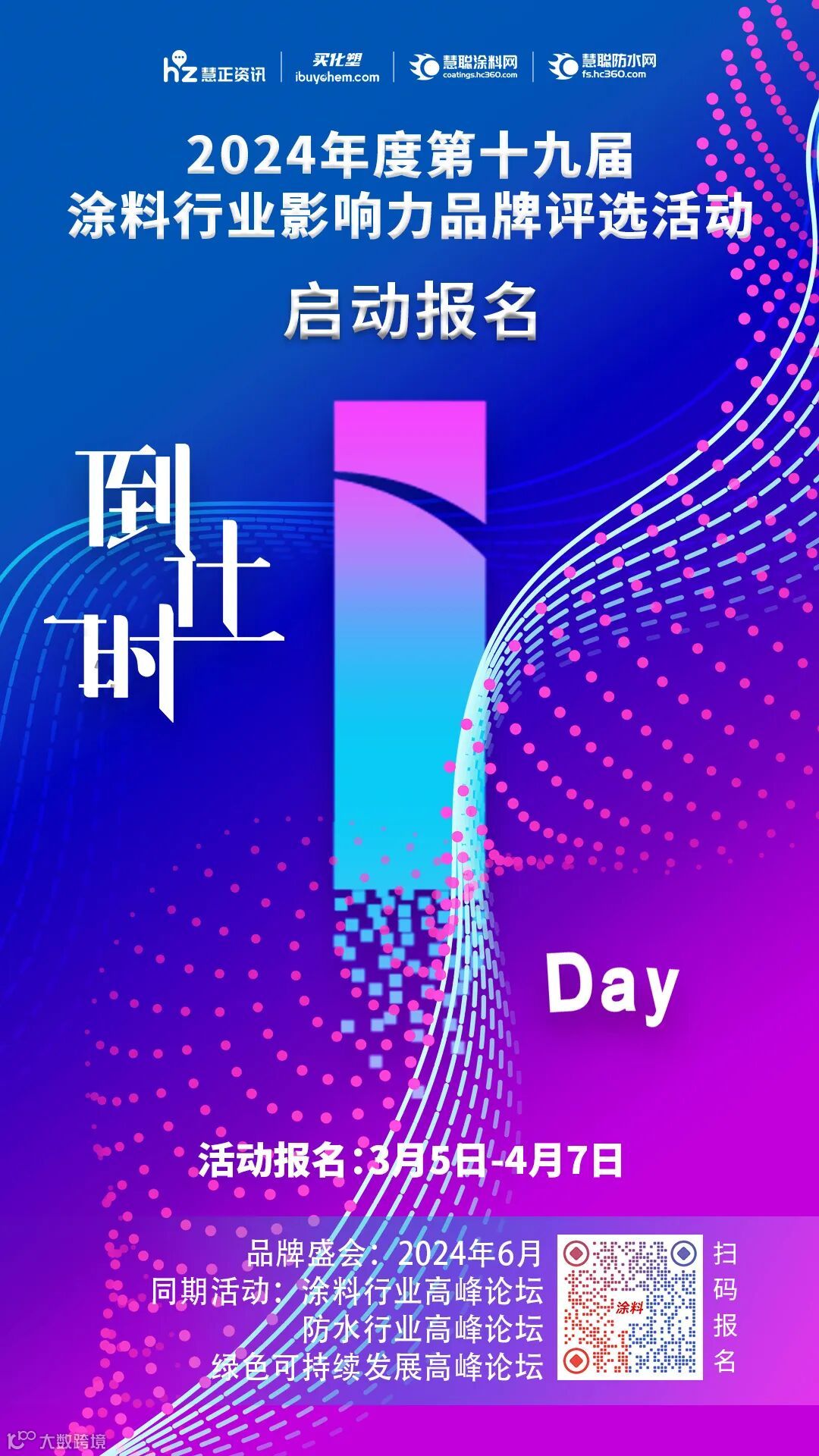 新征程,新起点,携手缔造新时代!慧聪涂料网2024年度第十九届涂料行业影响力品牌评选活动将于3月5日开始报名!