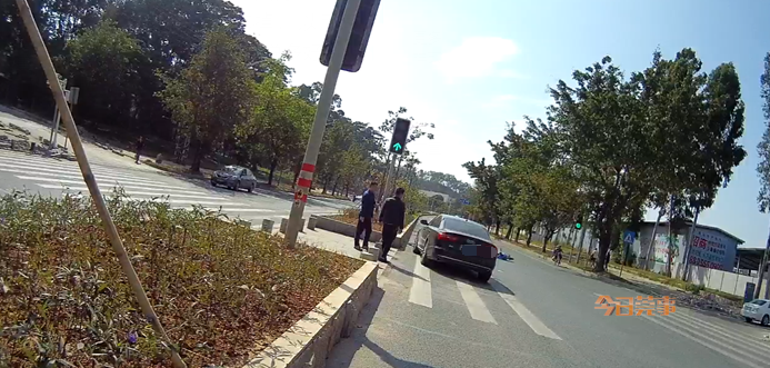 两个女的从这边过来,我是绿灯通行,我按了喇叭,她们一人骑车,一人看手机,我再慢也刹不住车了,“砰”的一声就把她撞到了。