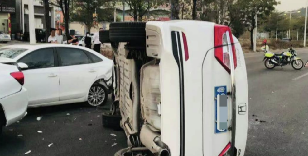 但在她撞上小轿车后,导致丈夫的新车也被撞