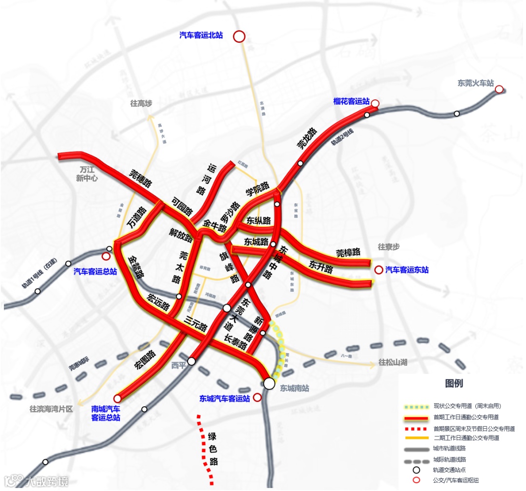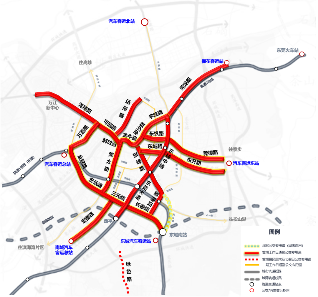 ▲ 中心城区公交专用道规划网络及首期实施方案