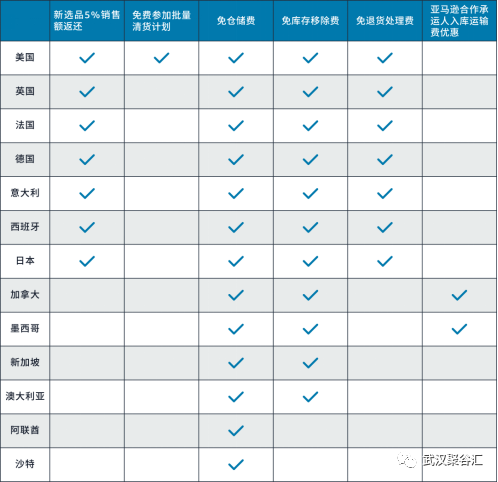 1)美国和欧洲站点服装配饰及鞋靴箱包类,在亚马逊运营中心收到首件商品后的180天内,如果发生买家退货,被退回的每个父ASIN最多可有20件商品免收退货处理费。