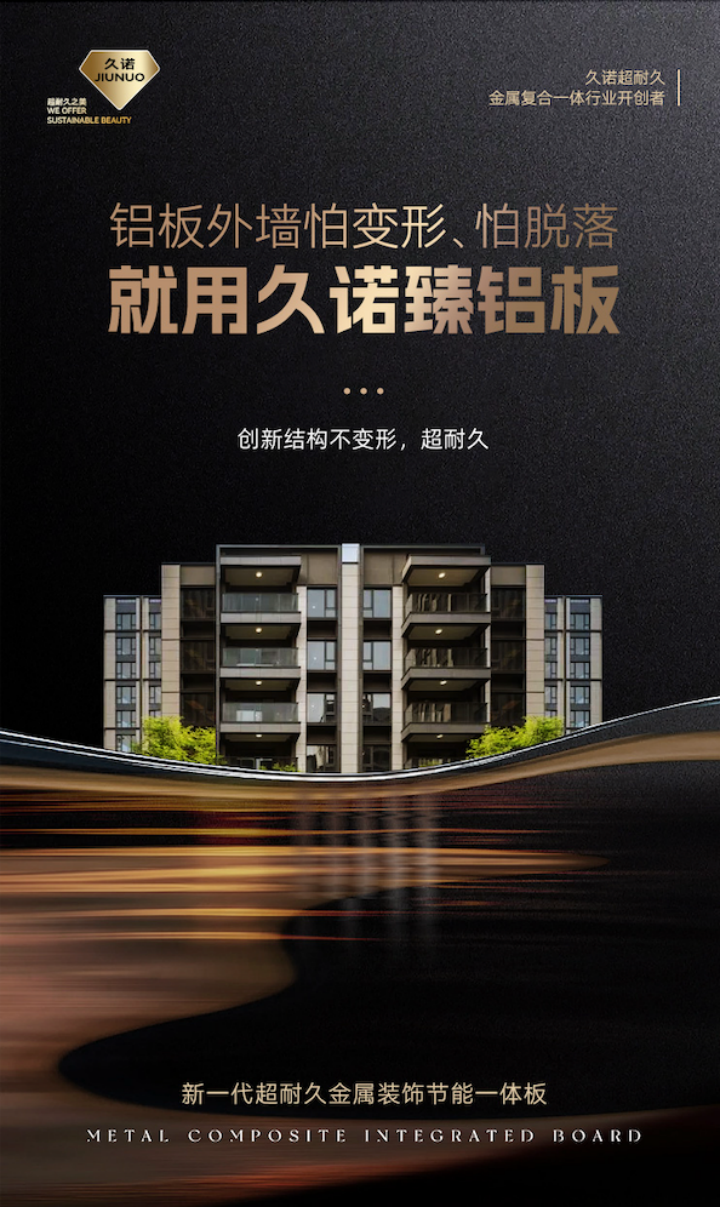导读:久诺推出的新一代节能装饰复合铝板的专业解决方案,将满足建筑立面的耐久性、可持续性、安全性、节能性、高效性以及高颜值等多重需求。