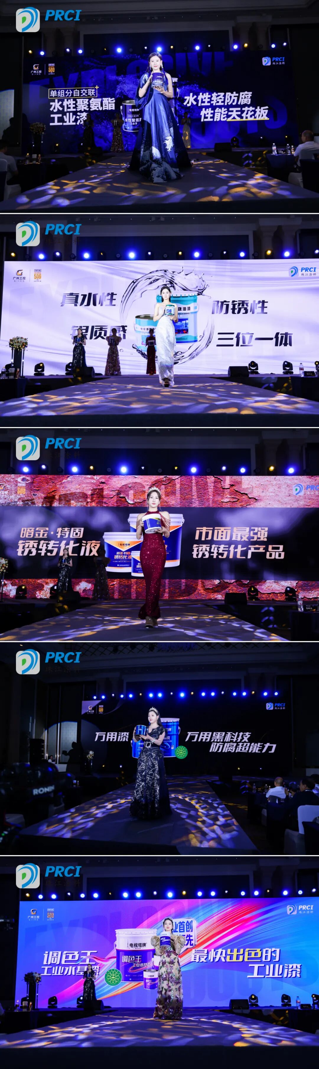 模特们手捧珠江涂料的明星产品悉数亮相,每一款产品都代表着涂料行业的最新科技与艺术,每一滴色彩都蕴含着无尽的创意与激情,它们无不都展示着公司产品的多样性和实用性。