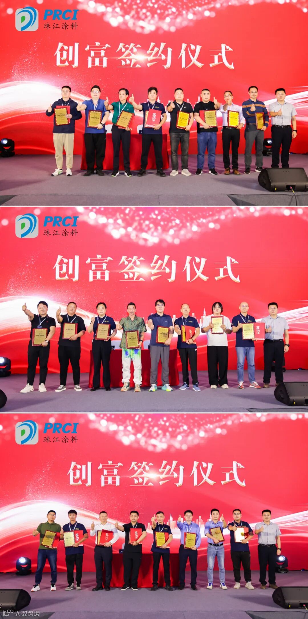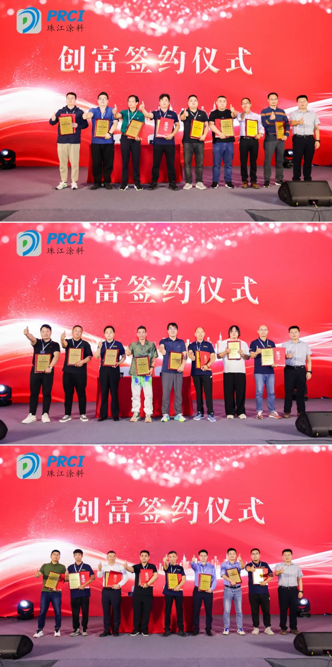 随后,来到本次会议的重头戏——创富仪式签约现场,珠江涂料与多家经销商达成了战略合作意向,随着双方代表的签字、授牌,一份份合作协议正式达成,标志着将进一步巩固和扩大公司在市场中的份额和影响力,经销商将与珠江涂料携手共进,共创美好未来。
