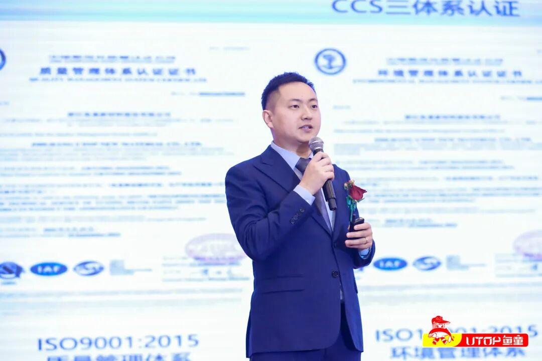 浙江鱼童新材料股份有限公司总经理曾超与总工程杨亚良携手呈现了精彩的演讲。曾总从鱼童三十载的发展历程出发,回顾了鱼童与航运业携手并进的岁月,同时生动描绘了民族船舶涂料逐渐走向世界的不易之路。