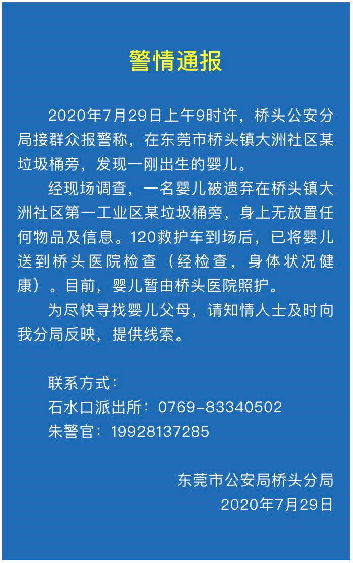 心疼!东莞一刚出生婴儿被遗弃在垃圾桶旁