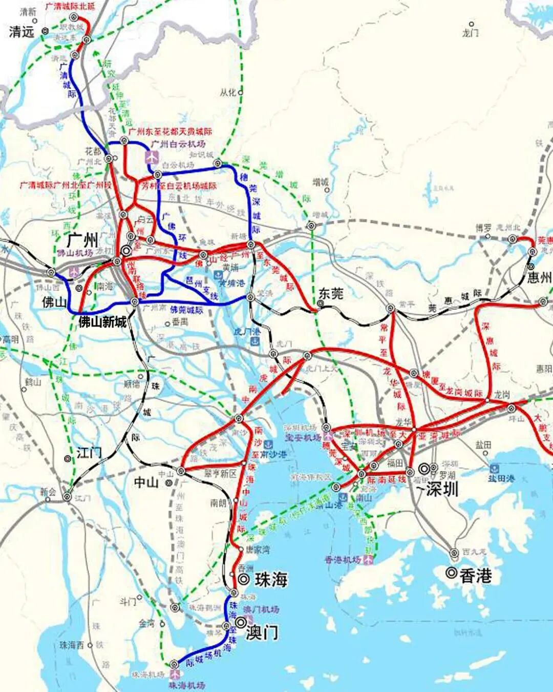 近期到2025年,大湾区铁路网络运营及在建里程达到4700公里,全面覆盖大湾区中心城市、节点城市和广州、深圳等重点都市圈;