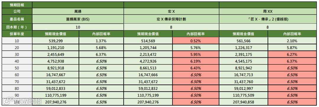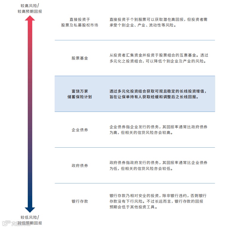 横向对比来看,万通「富饶万家」与友邦「环宇盈活」、安盛「盛利2」同属第一梯队。对比市场同类产品,收益处于领先地位。产品定位"六边形战士",融合高回报、灵活性与传承功能,依托万通YFLife全球投资能力与股东背景,在港险市场形成差异化竞争优势。