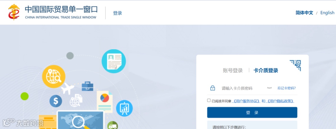 第二步:企业完成单一窗口账号,并获得电子口岸卡,插卡登录到单一窗口