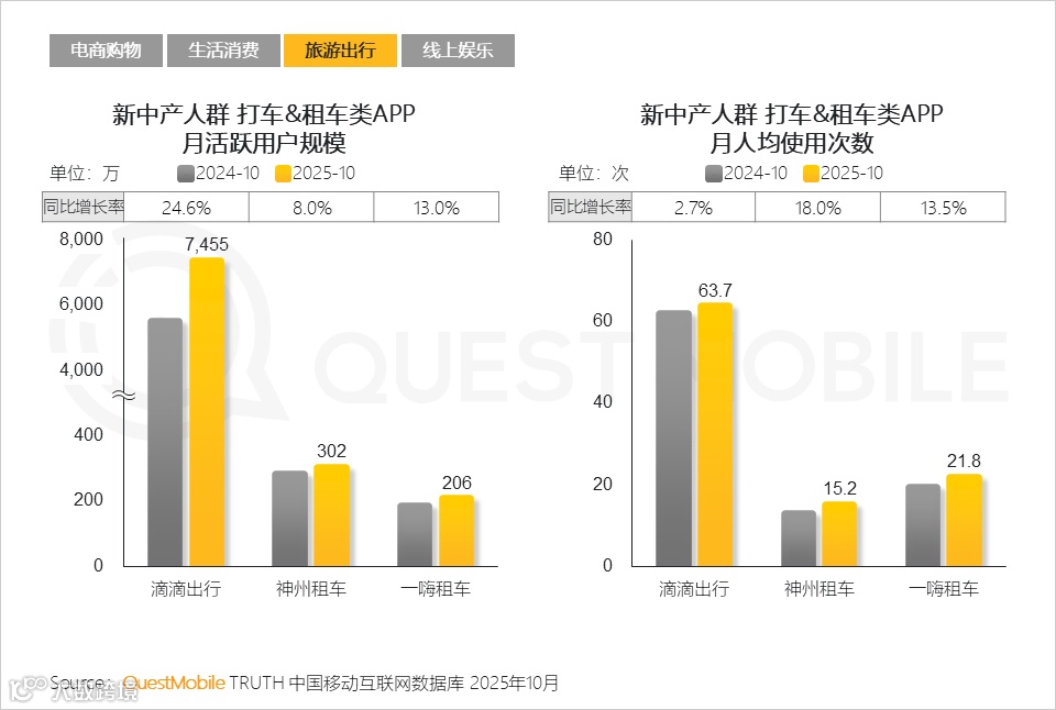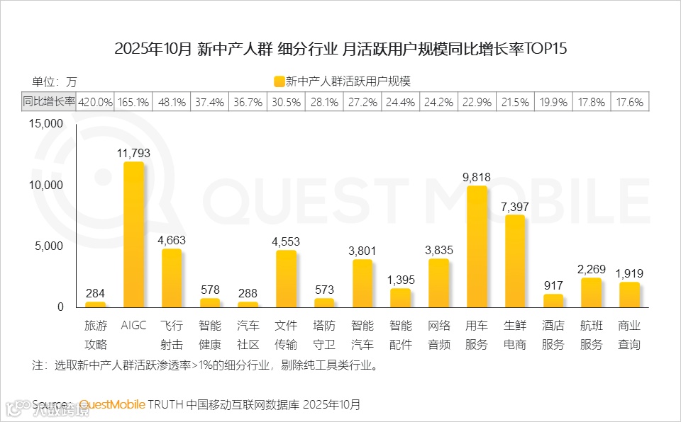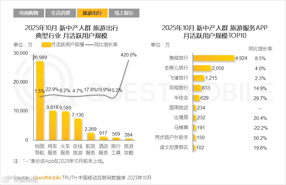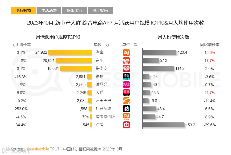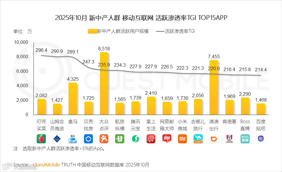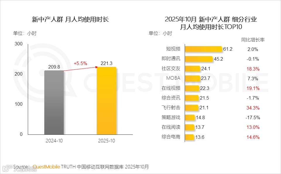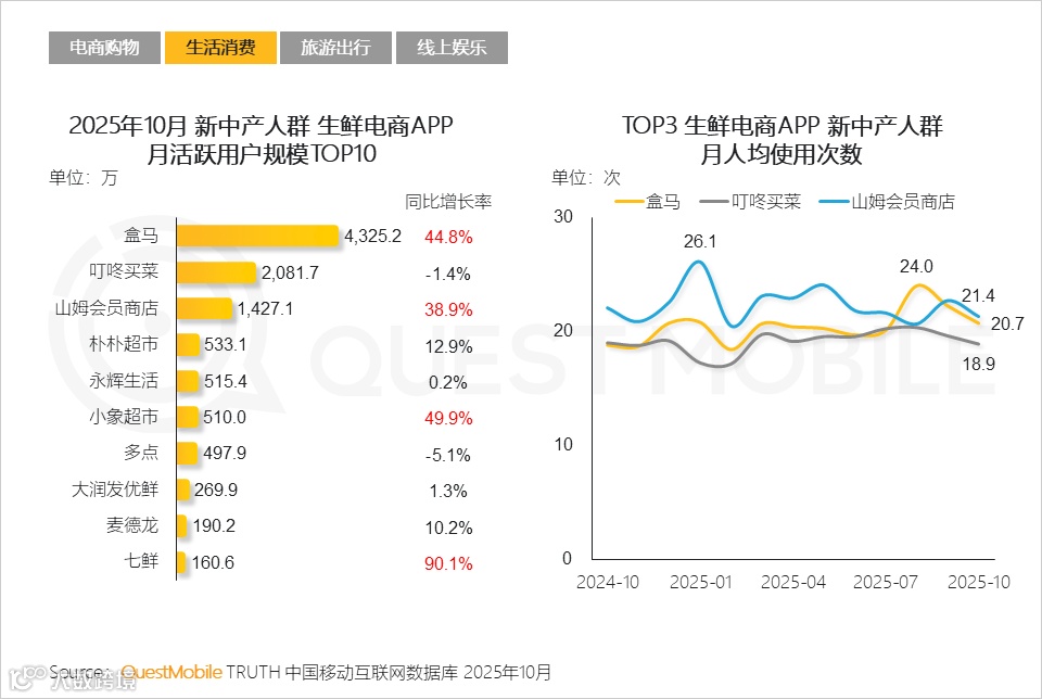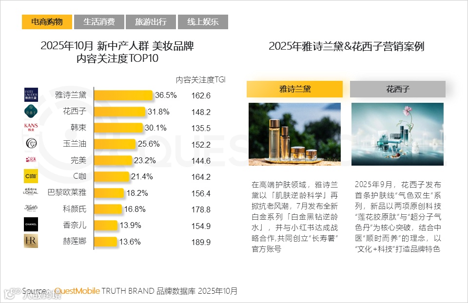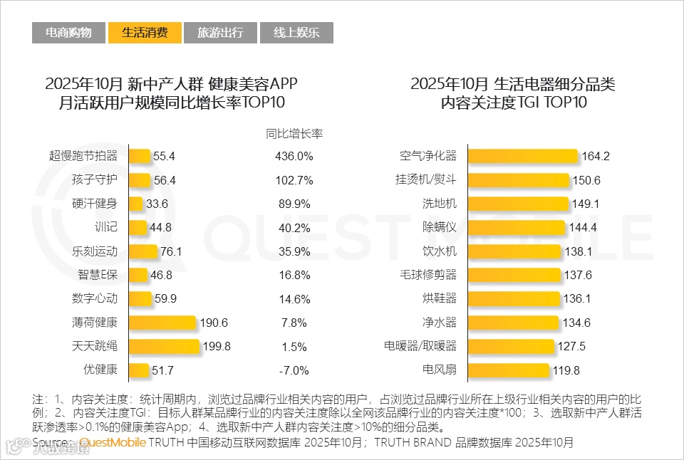 QuestMobile数据显示,截至2025年10月,新中产人群规模达2.78亿,同比净增317.4万。一线及三线城市双向延展,高消费力(线上月消费3000元以上)与高意愿用户占比分别同比提升1%和1.7%,高价值客群持续扩容。