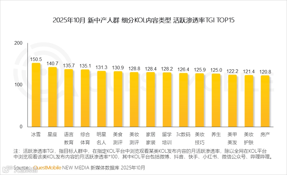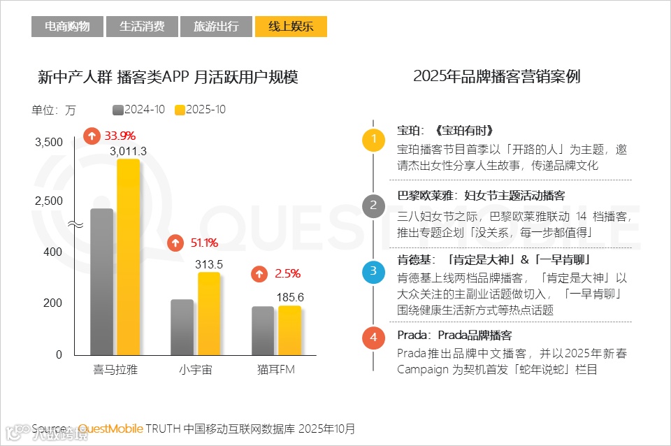 KOL内容偏好呈现品质生活导向与兴趣垂直深耕双重特征:既关注语言、留学等自我提升领域,也热衷美妆、3C数码、养生等生活消费内容[6]。播客因具备深度内容与情感连接价值,成为品牌触达中产的有效渠道[13]。