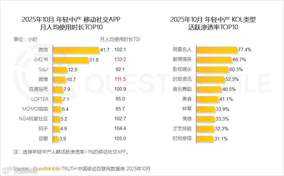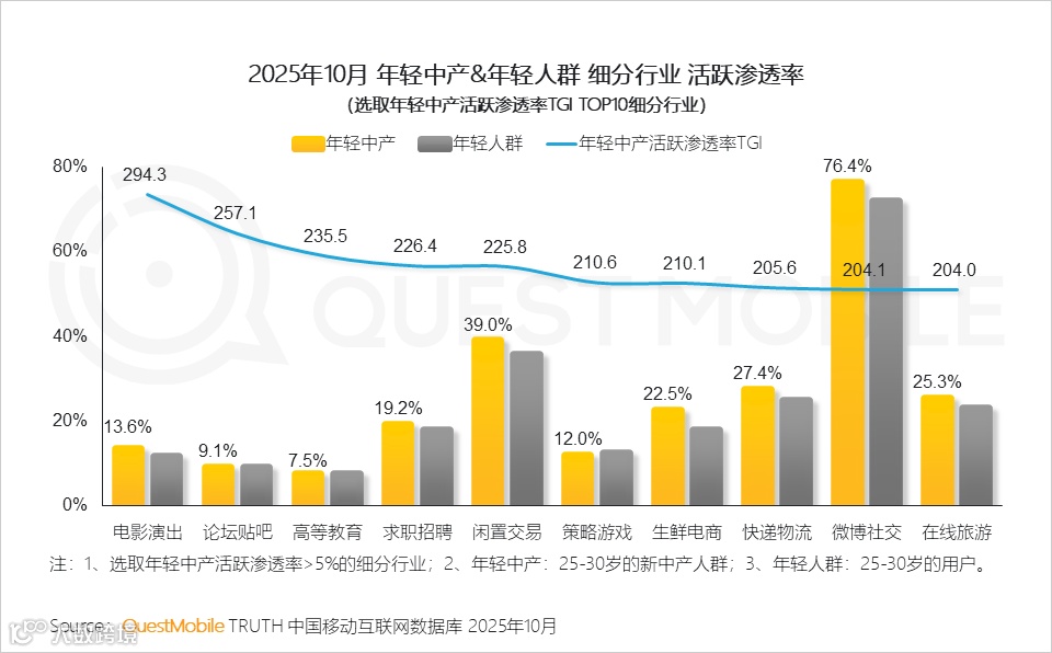 31–40岁核心人群月活达1.64亿,同比增长0.5%,在汽车、房产、生鲜电商、旅游出行等大宗及高频消费领域需求旺盛;25–30岁潜力人群月活1.14亿,同比增长2.1%,线上泛娱乐化、圈层化特征突出,在社交平台使用深度高于同龄人[13]。
