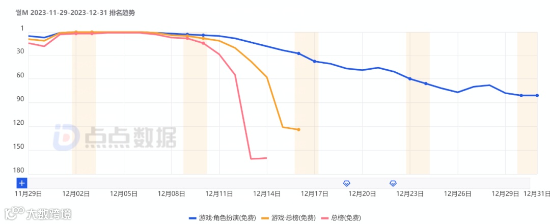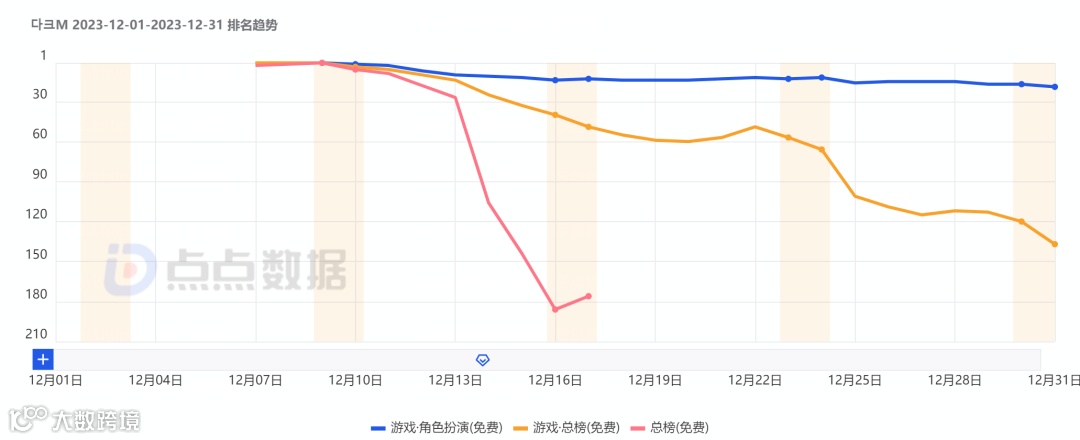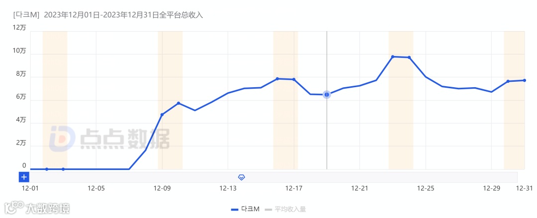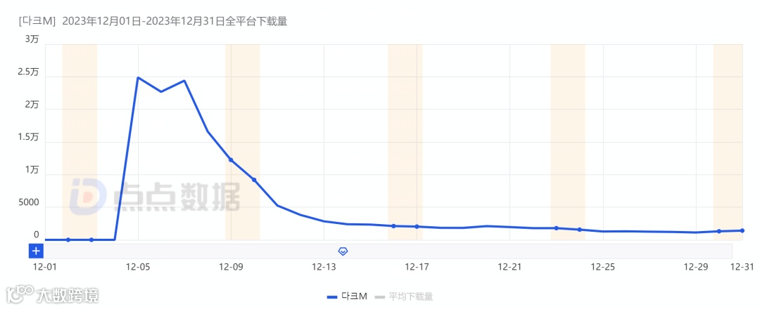 根据点点数据统计,《다크M》上线不满一周下载数据便快速下滑,12月在韩国累计拿下超过15万的下载量。预估收入方面则是在产品质量的保证下维持相对稳定的趋势水平。其12月预估收入超过165万美元。