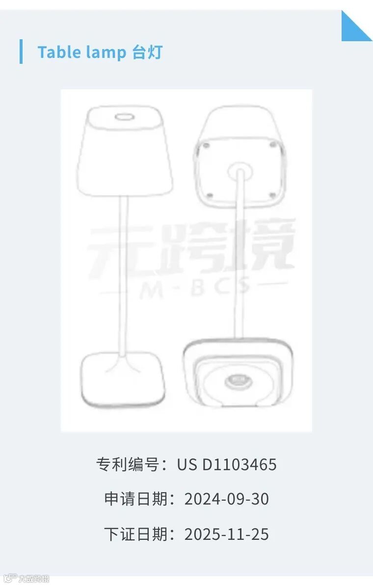 美国专利局11月25 日最新公告:又一批外观专利集中授权!速筛 了21 款热门下证产品。跨境电商常见款扎堆,售卖相似商品的商家即刻面临侵权投诉与 TRO 冻结风险,速查速避!