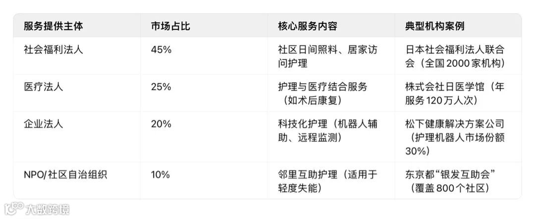 日本介护险制度以“政府主导筹资、社会力量提供服务”为特征,2024年运行数据显示其独特的市场格局:
