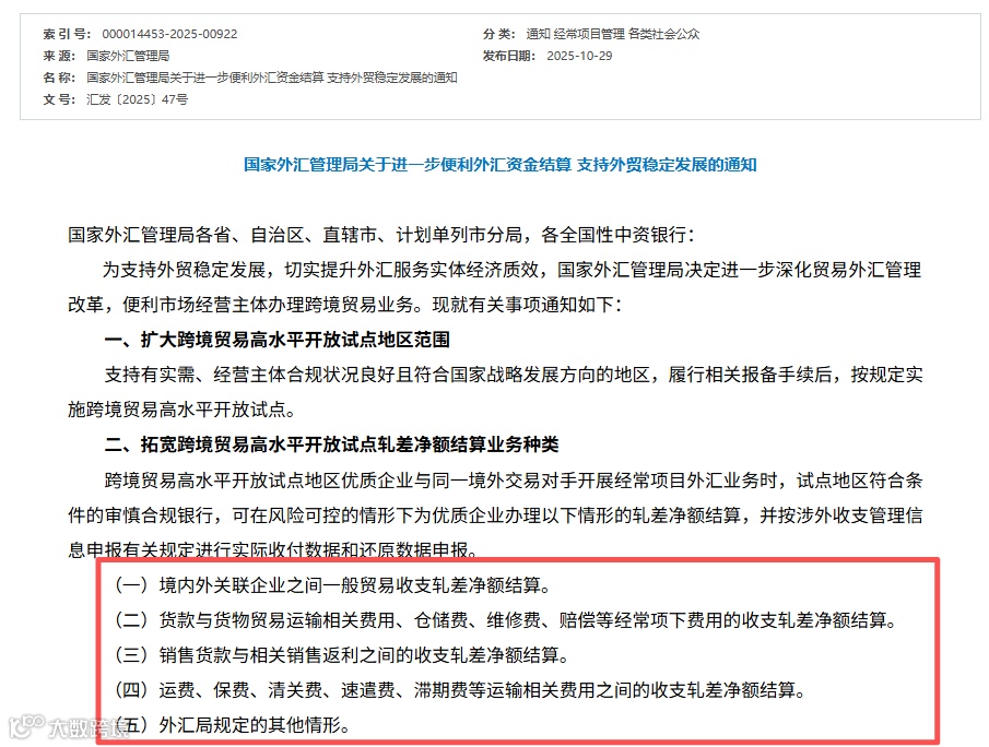 不影响。 根据外管局《汇发〔2020〕11号文》及后续《汇发〔2025〕47号文》的明确规定:从事跨境电子商务的企业可将出口货物在境外发生的仓储、物流、税收等费用与出口货款轧差结算,并按规定办理实际收付数据和还原数据申报。跨境电子商务企业出口至海外仓销售的货物,汇回的实际销售收入可与相应货物的出口报关金额不一致。