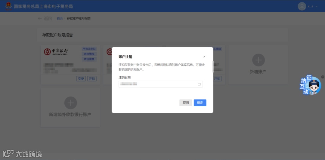 2. 注销成功后,系统将同步终止相关三方协议,并生成《纳税人存款账户账号报告表》供下载[k]。