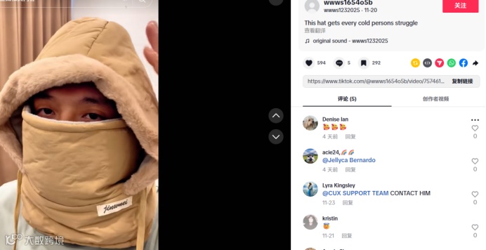 近日,在TikTok上,“nike ski mask”相关作品超12万条,不少网友分享好用的物理保暖装备,从2023年开始,每到冬季,各种保暖产品开始热卖。